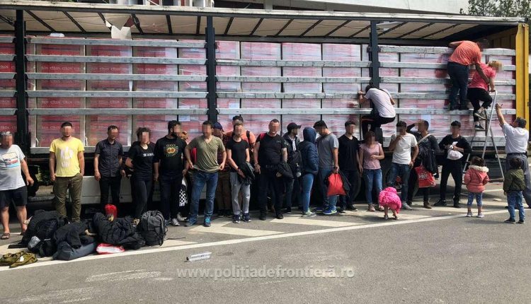 Poliţiştii de frontieră din cadrul Punctului de Trecere a Frontierei Nădlac II – judeţul Arad au descoperit 34 de persoane din Iran şi Irak, care au încercat să iasă ilegal din ţară, ascunse în interiorul unui automarfar.