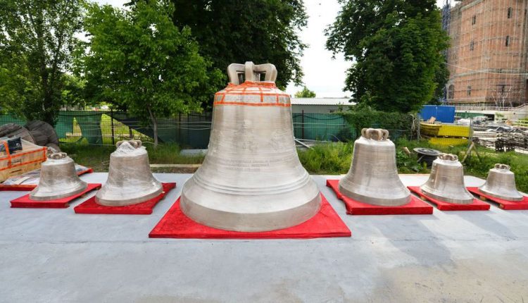 Toate cele 6 clopote care adună 33 tone vor fi montate în turla clopotniței de pe fațada de vest, la o înălțime de 60 metri.