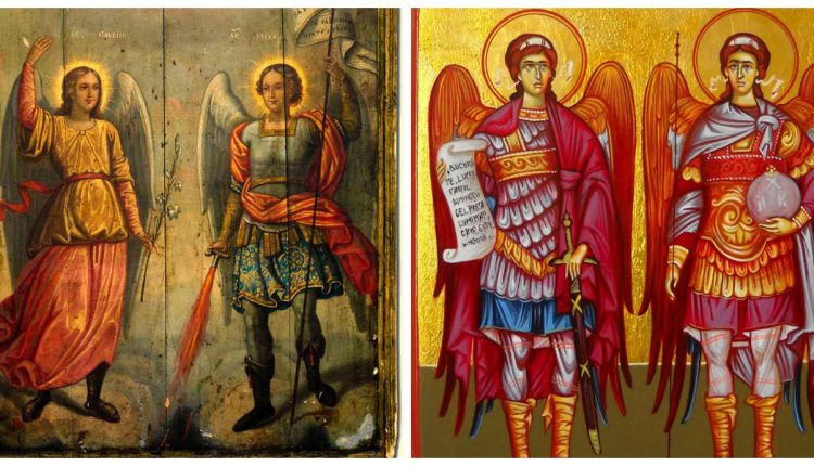 În iconografia noastră ortodoxă, Arhanghelul Mihail este reprezentat purtând în mână o sabie de foc, pentru că el pedepseşte păcatul, pedepseşte nedreptatea şi apără pe cei drepţi. El pedepseşte popoare rele şi apără popoare bune care împlinesc voia lui Dumnezeu. Arhanghelul Gavriil este reprezentat în iconografia noastră purtând în mână o floare de crin alb, ca simbol al purităţii, al bucuriei şi binecuvântării, pentru că el aduce neamului omenesc vestea cea bună a întrupării Fiului lui Dumnezeu, Care ne aduce mântuirea.
