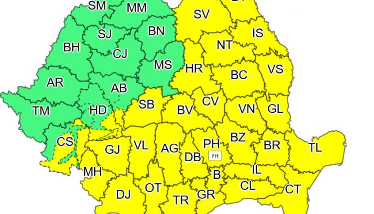 Doar nouă judeţe nu se vor afla sub Cod galben, respectiv Timiş, Arad, Bihor, Satu Mare, Sălaj, Cluj, Mureş, Bistriţa-Năsăud şi Maramureş. ANM avertizează însă că local şi temporar, ninsori cu depunere de strat de zăpadă vor fi şi în Transilvania