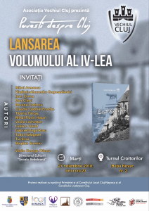 De la ora 20:00, în același loc, se lansează al IV-lea volum de Povești despre Cluj, dedicat Centenarului Marii Uniri. Astfel, poveștile sunt preponderent despre persoane, locuri și evenimente cu însemnătate pentru Marea Unire de la 1918; totodată volumul conține texte și despre alte perioade istorice, așa cum au apărut și în cele trei volume precedente. Lansarea se va face în prezența autorilor din al IV-lea volum: Mihai Armanca, Vladimir‑Alexandru Bogosavlievici, Ioan Ciorca, Dan Clinci, Roxana Croitoru, Claudiu Gabriel Enache, Tiberiu Fărcaș, Mihai‑Florin Hasan, Vasile Lechințan, Lukács József, Gabriel‑Virgil Rusu, Tudor Sălăgean, Tia Sîrca și Bogdan Stanciu. Invitat la ambele evenimente este și domnul Vasile George Dâncu, directorul Editurii Școala Ardeleană, sub a cărei siglă apar cele două volume.
