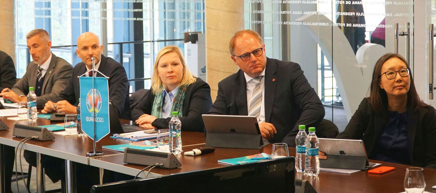O delegație a UEFA a fost la București pentru a constata în ce măsură proiectele de pregătire a EURO 2020 sunt în grafic. Din partea forului european au fost prezenți manageri ale diferitelor departamente care se ocupă cu implementarea EURO 2020 în cele 12 orașe gazdă: Sharon Burkhalter-Lau (Director of Operations), Andreas Schär (Head of Venue Operations), Guillaume Poisson (Head of Host Country Projects), Philippe Margraff (Head of Revenue Operations), Catalina Navarro (Head of Events), Christopher Gibbons (Head of Events Operations), Daniel Marion (Chief of ICT), David Farrelly (Head of EURO 2020 Communications) și Katharina Scheel (Planning & Project Coordination Expert). Gazde le-au fost pe parcursul vizitei reprezentanți ai Federației Române de Fotbal, Primăriei Capitalei și Guvernului României.