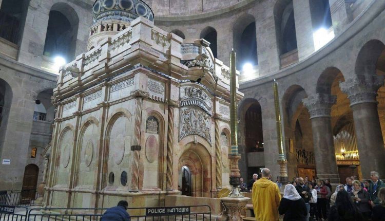 În mulţimea de pelerini din jurul lăcaşului unde se află Sfântul Mormânt s-au adunat zeci de creştini de diferite rituri (greco-ortodox, romano-catolic, apostolic-armean, copt, ortodox-siriacă şi ortodox-etiopiană) care împărtăşesc în comun această bazilică. Sfântul Mormânt se află în Ierusalim de Est, partea palestiniană a oraşului ocupat şi anexat de Israel. Creştinii palestinieni sunt majoritatea de rit ortodox