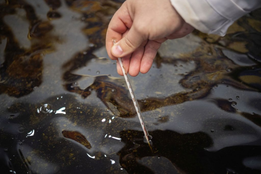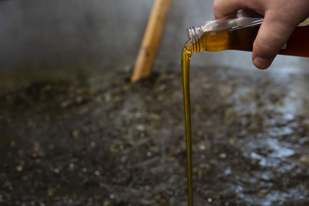 Decoctul preparat cu plante aromate și vin a fost încălzit ca să fie fluid pentru a fi transferat în cazanul de 1.000 litri apoi s-a adăugat materia principală: peste 400 litri de ulei de măsline, a explicat Mitropolitul Laurențiu.