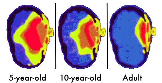 Se observă că efectele remanente ale radiațiilor se manifestă la o adâncime mai mare în cutia craniană la copii, cu atât mai mare cu cât vârsta e mai mică și asta în condiții de absorbție nerezonantă. Creierul copiilor în creștere este în mod deosebit în pericol, deoarece absoarbe de două ori mai mult radiația comparativ cu creierul adulților. Rezonanța amplifică foarte mult efectele de absorbție. Înainte de această descoperire, psihofiziologii americani arătaseră că o reflectare similară are loc între activitatea psihomentală şi substanţele descărcate la nivel cerebral (neurotrasmiţători şi hormoni).