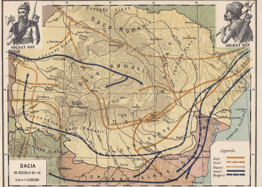 Germanii au un cuvânt mai potrivit pentru a desemna invazia barbarilor: ei spun Volkerwanderung, ceea ce înseamnă „migraţia popoarelor”, fiindcă o adevărată năvălire, adică un puhoi de călăreţi care să pustiască tot locul, să prade oraşele şi satele şi să ucidă populaţia, aceasta s-a întâmplat doar la două-trei sute de ani, de pildă o dată cu venirea hunilor, a avarilor, a ungurilor la început — uneori şi cu năvala anumitor triburi germanice, ca vandalii (al căror nume a intrat în limbile moderne cu înţelesul de sălbatici care distrug numai din setea de a distruge). Dar goţii (vizigoţii şi ostrogoţii), gepizii şi alte neamuri germanice, venite din sudul Rusiei de azi, agresive şi ele, desigur, au căutat mai întâi o aşezare în teritoriul imperiului — unii se prezentau chiar ca posibili aliaţi pentru a apăra imperiul împotriva altor duşmani. Fiindcă, ştiţi ce se întâmplă cu vremea într-o ţară prea bogată, prea fericită, cum a devenit Imperiul Roman la începutul erei noastre: bărbaţii nu mai vor să facă serviciu militar; atunci aceşti germanici, mai mult sau mai puţin sălbatici, se prezentau ca eventuali aliaţi, ca ostaşi suplimentari pentru apărarea imperiului. Li s-a zis „federaţi”, adică aliaţi ai Romei, care-şi păstrau organizaţia şi căpeteniile lor. Aşa au venit şi în Dacia. Dar în urma lor veneau alţii, şi mai sălbatici, porniţi pe jaf şi distrugere, astfel încât romanii s-au gândit că Dacia, dincolo de Dunăre, era prea departe de centru, prea greu de apărat, şi că era mai bine să retragă legiunile la sud de Dunăre; în 27l-272 d. Cr. împăratul Aurelian (al 27-lea succesor al lui Traian) a hotărât evacuarea provinciei Dacia. – Neagu Djuvara