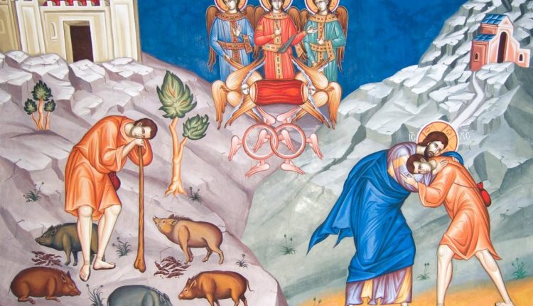 Dar, venindu-şi în sine, a zis: Câţi argaţi ai tatălui meu sunt îndestulaţi de pâine, iar eu pier aici de foame! Sculându-mă, mă voi duce la tatăl meu şi-i voi spune: Tată, am greşit la cer şi înaintea ta; nu mai sunt vrednic să mă numesc fiul tău. Fă-mă ca pe unul din argaţii tăi. Şi, ridicându-se, a venit la tatăl său. Dar, încă departe fiind el, l-a văzut tatăl său şi i s-a făcut milă şi, alergând, a căzut pe grumazul lui şi l-a sărutat.