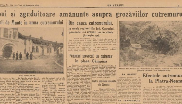 La 10 noiembrie 1940 a avut loc un cutremur cu magnitudinea de 7,4 grade pe scara Richter (7,7 Mw), produs la ora 3:39 dimineața, cu epicentrul în zona Vrancea, la o adâncime de circa 133 km. A fost primul mare cutremur din România contemporană, având o durată de 45 de secunde.