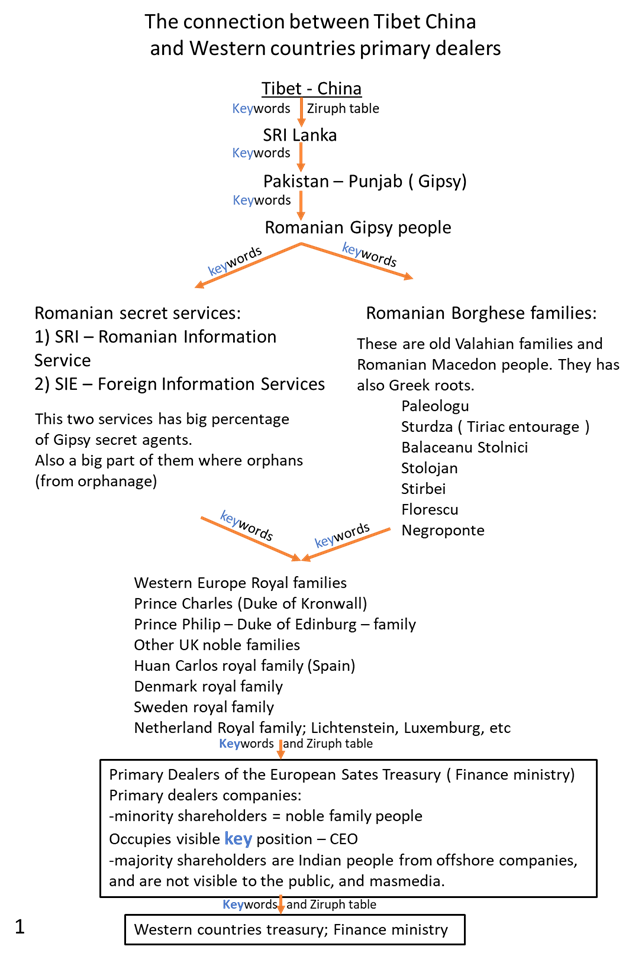 În diagrama următoare arătam, conform „ MASTER of CHESS „ cum și de ce ROMÂNIA este implicată în jocul de putere tibetan si care este rolul familiilor burgheze de la noi în funcționarea rețelei.