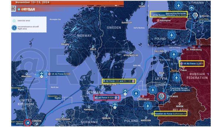 – 2 bombardiere strategice B-52H ale Escadrilei 20 de bombardament a Forțelor Aeriene ale SUA au decolat de la baza aeriană Fairfod din Marea Britanie, au survolat Marea Baltică, Estonia, Letonia, Lituania și au lansat bombe ghidate în poligonul militar Kazlu-Ruda din Lituania, la 30 km est de granița cu enclava Kaliningrad. Antrenamentul s-a desfășurat conform unui scenariu de luptă împotriva unui inamic din zona coridorului Suwalki ( fâșia de teren de 100 km, dintre Kaningrad și Belarus. În timpul loviturilor cu B-52N, au fost folosite și 4 avioane de recunoaștere americane și suedeze. Ele au evaluat nivelul de pregătire și acțiunile personalului militar rus din regiunea Kaliningrad ( harta 1 ).